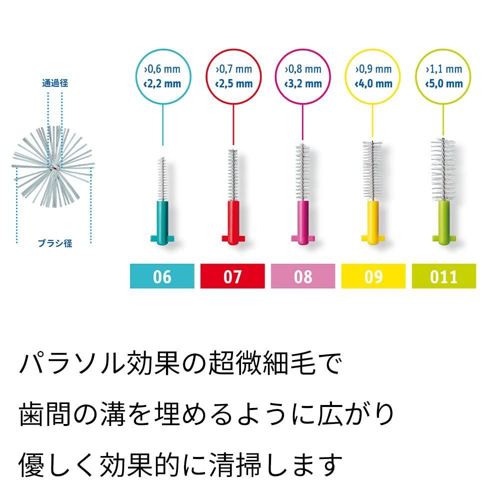 その上質毛はパラソル効果により歯間の溝を埋めるように広がり優しく効果的にお掃除します。