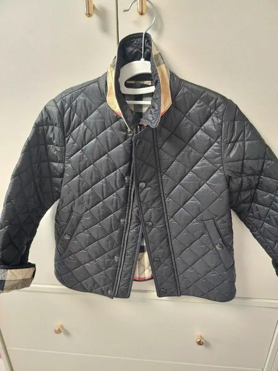 バーバリーキッズキルトジャケットサイズ 6Y.襟と袖に施されたバーバリーのシグネチャー柄は豪華です。薄手のキルティングでシーズン中は軽く着やすいです。ご不明な点がなければ、すぐに安心してお支払いいただけます!
