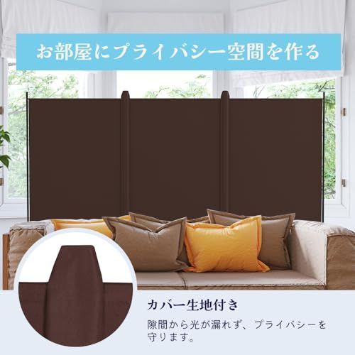 【組み立て簡単】 全体サイズ:高さ180cm×幅260cm。カラー:ブラウン。おしゃれ衝立は防水生地でできており、お手入れも簡単です。取り付けも簡単で、1人で20分以内に部屋パーテーションを組み立てることができる。屏風についてご不明な点がございましたら、お気軽にお問い合わせください、弊社はできるだけ早く問題を解決するお手伝いをいたします。