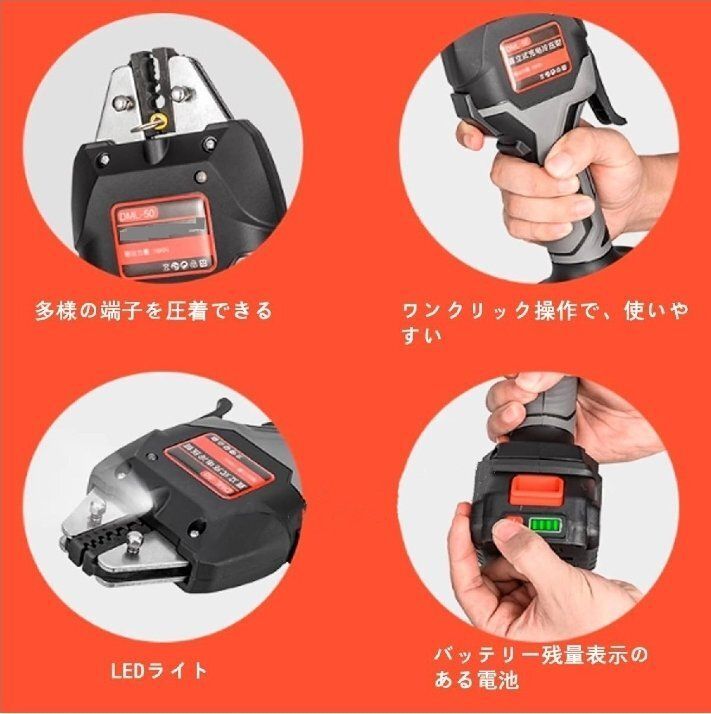 電動圧着機 ダイス 付き 電動圧着ペンチ 裸端子 絶縁被覆端子 フェルール圧着工具 バッテリー
