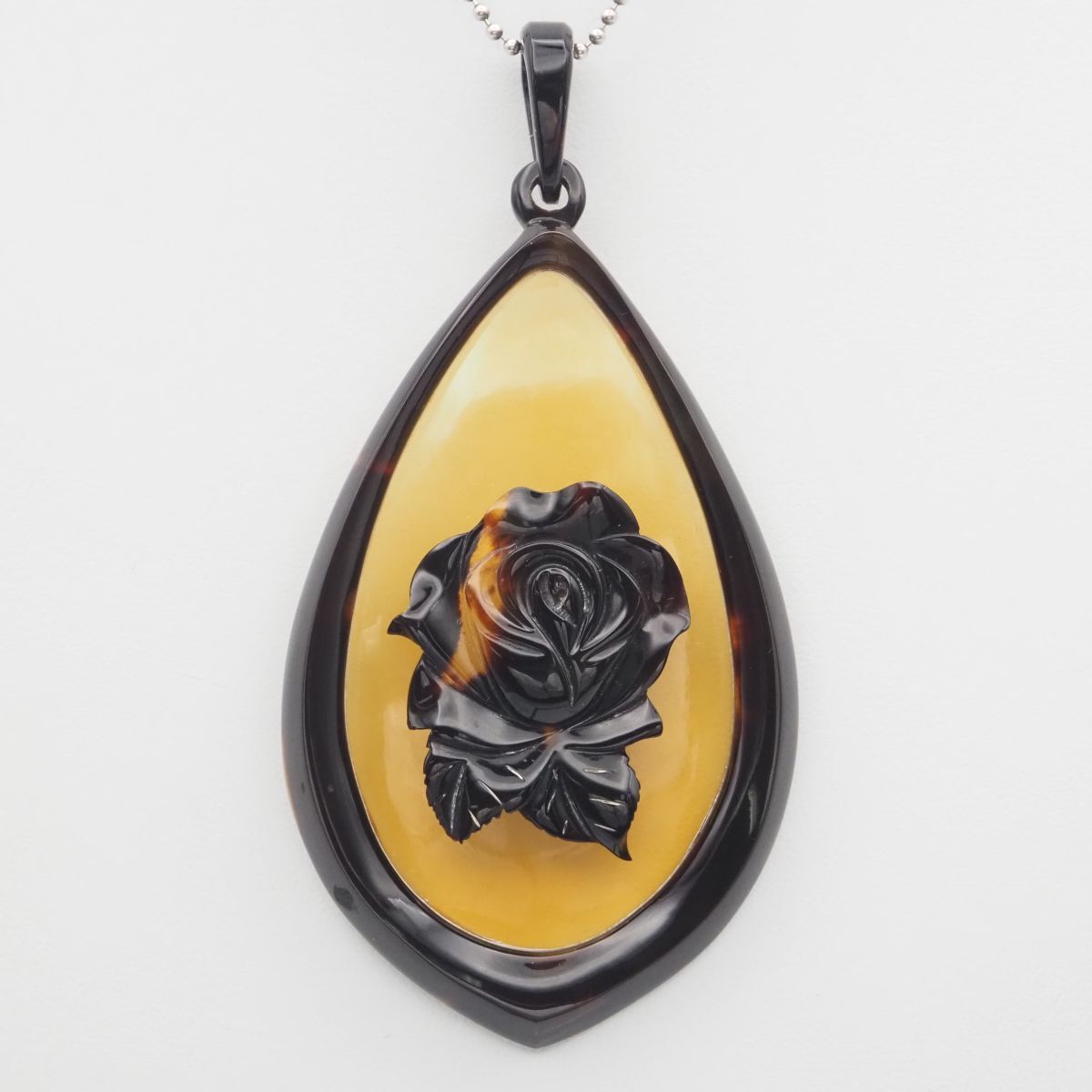 J 632 特大 鼈甲 べっ甲 ペンダントトップ 薔薇 ローズ デザイン チャーム ヘッド