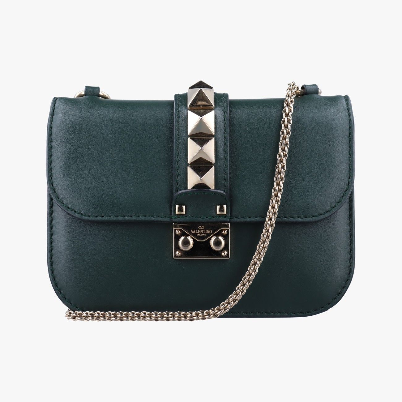 ヴァレンティノValentinoロックスタッズグラムロックスモール グリーン レザー BL-