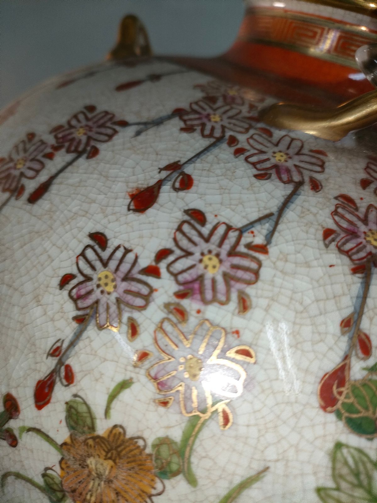 S 8-6 薩摩焼 色絵金襴手花鳥図四耳花瓶 花器 花入 華道具