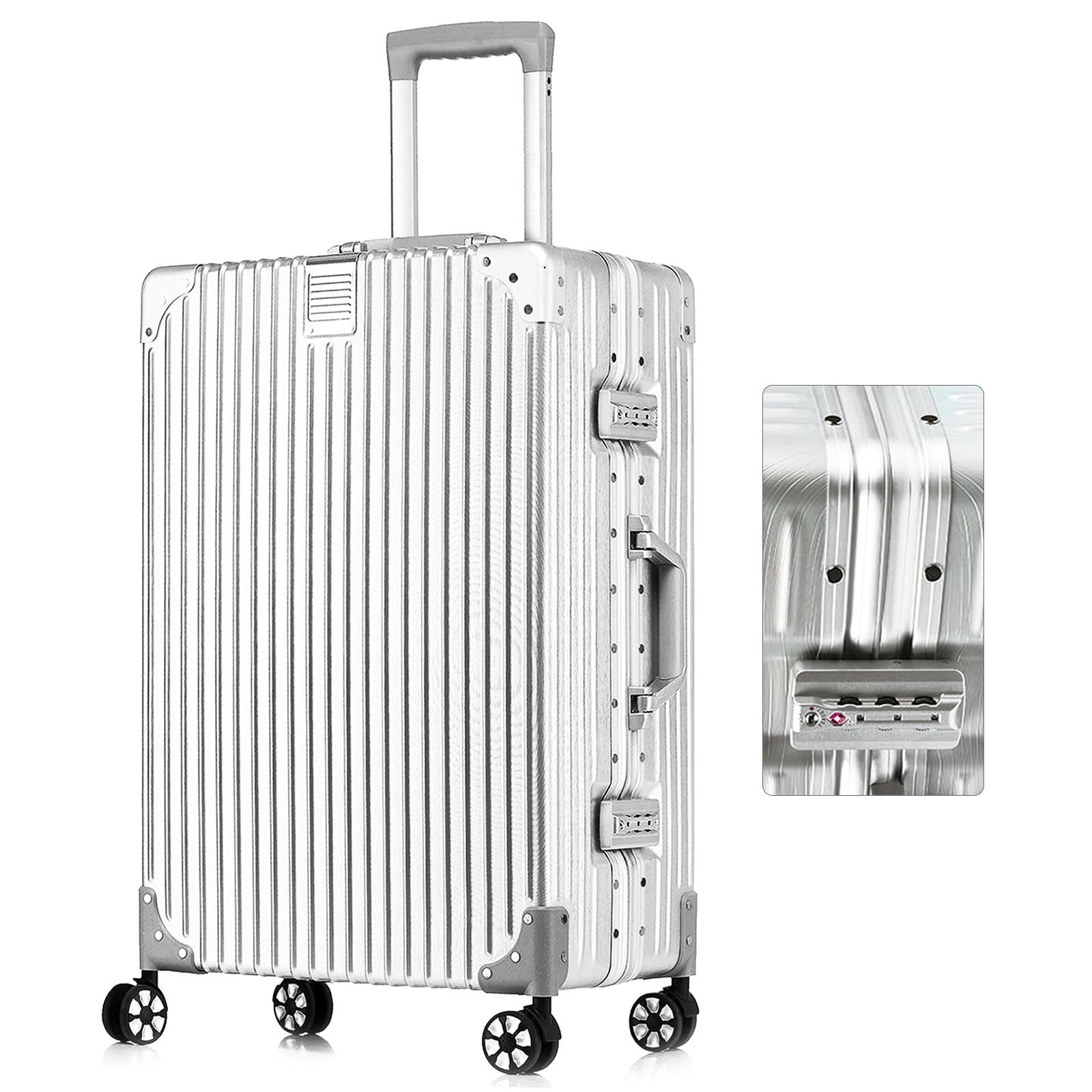 [Airmood] スーツケース 機内持ち込み キャリーケース 軽量 アルミフレーム トロリーケース キャリーバッグ TSAロック 静音 ダブルキャスター 大型 耐衝撃 出張 旅行 Lサイズ シルバー 78L 5泊7日