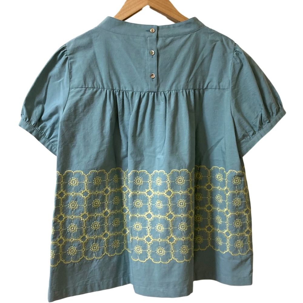24 SS mina perhonen ミナペルホネン anemone コットンシルク プルオーバーブラウス acs 1355 s サイズ40 ブルー レディース 古着