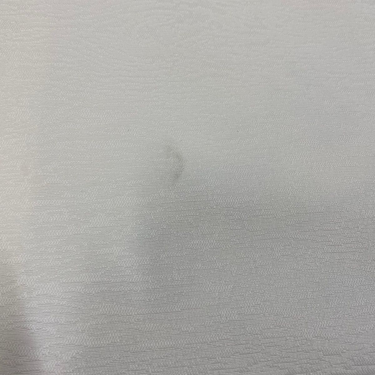 後身頃の裾付近と右袖前後と左後袖にシミ、右胸に点シミ、衿周りや両袖口中に薄汚れ、表地所々にシワがございます。