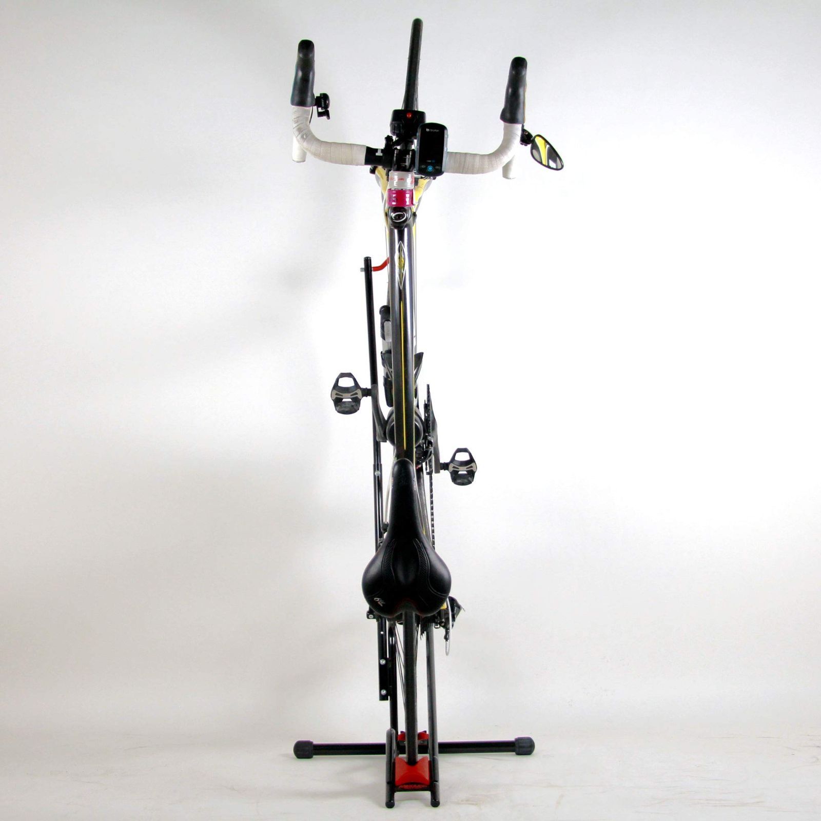 短いあいだ仮置きするだけなら、タイヤ受けに後輪あるいは前輪を差し込むだけでも、自転車は安定して自立します。