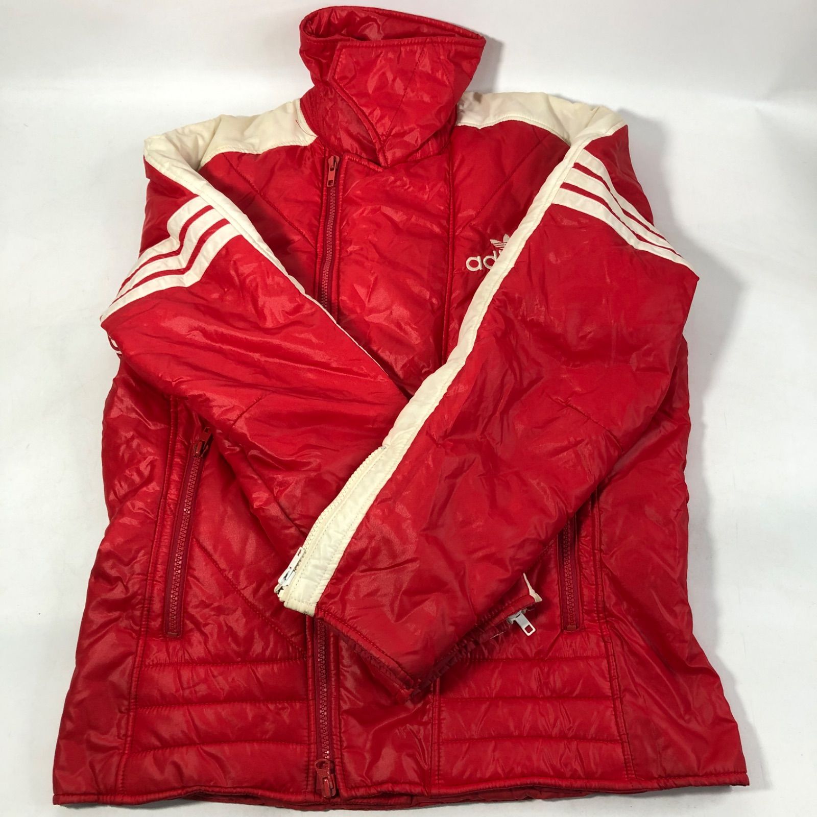 A 1002-34-8 adidas アディダス 80 s ヴィンテージ アウター ナイロン中綿ジャケット Lサイズ ジャンパー レッド系 着丈66 cm 身幅53 肩幅45