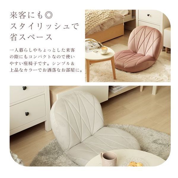 キルト加工がお洒落。座面・背面が立体的な構造なので身体が包み込まれる座り心地。背もたれは14段階リクライニング。