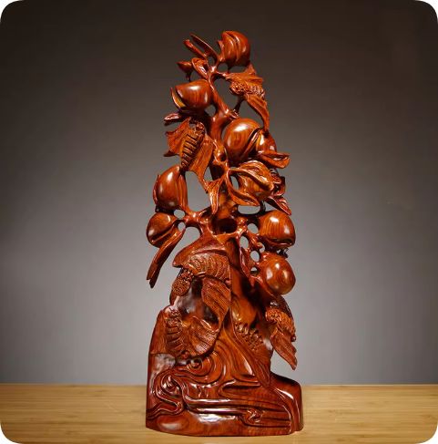 梨の木の彫刻と福寿の両方の根の彫刻の置物を飾るホームテレビキャビネットマホガニーの工芸品