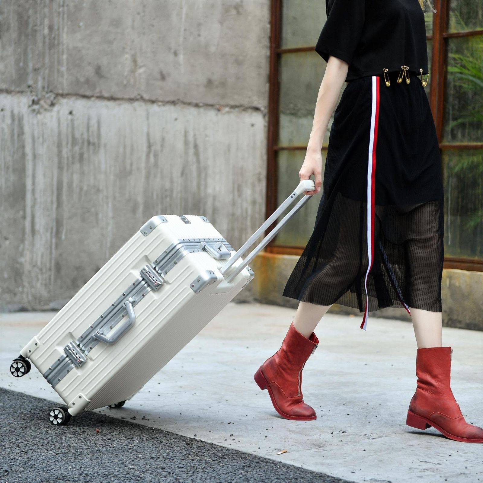 7泊-10泊 XXLサイズ 保護カバー付き ホワイト tsaロック付 出張 ビジネス 旅行 100 L 耐衝撃 静音ダブルキャスター 軽量キャリーバッグ 大型トロリーケース 預け入れスーツケース ケース機内持ち込み キャリー アルミフレーム スーツケ