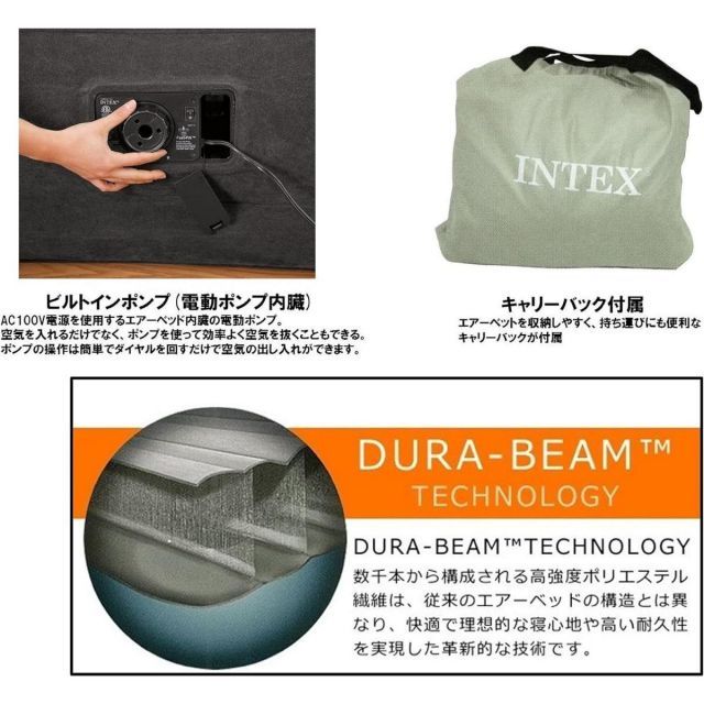 INTEX CPミッドライズ エアーベッド ACポンプ付き ダブル 電動ポンプ 災害対策 防災