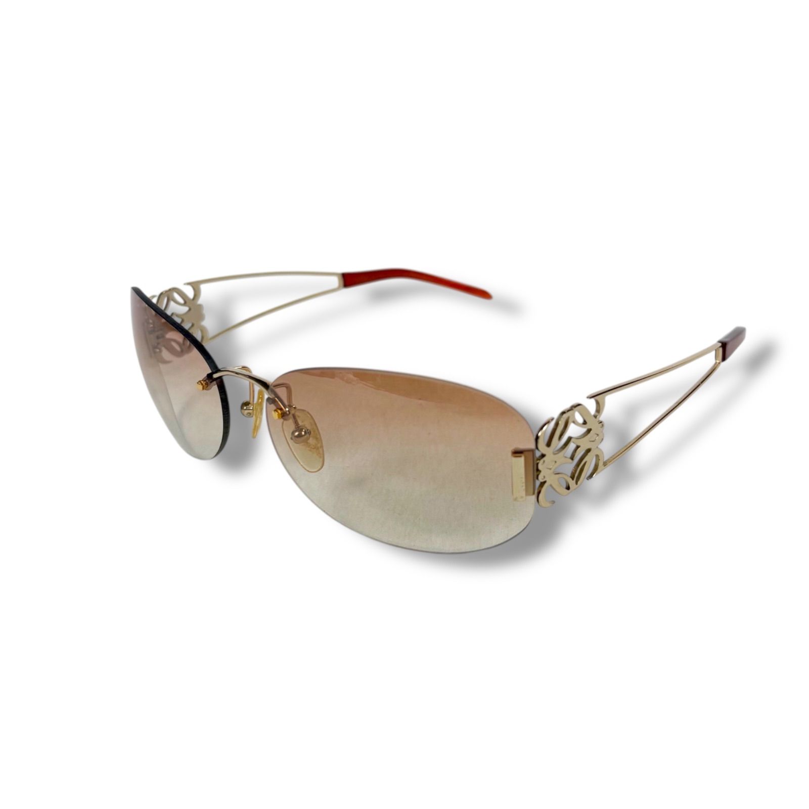LOEWE ロエベ リムレス サングラス サイドロゴ アナグラム 度無し グラデーション レッド ピンク 暖色系