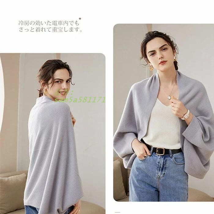 カシニット カーディガン 長袖 レディース カシミア100% マント ト ショールダブルフェイス 大判 ストール ケープ ポンチョ リブ編み ボリューム袖 am 5 a 581171