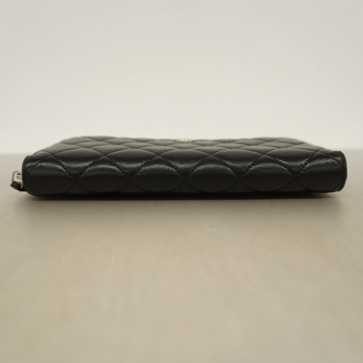 5 ie 6390-h シャネル 長財布 マトラッセ ラムスキン ブラック シルバー金具 レディース