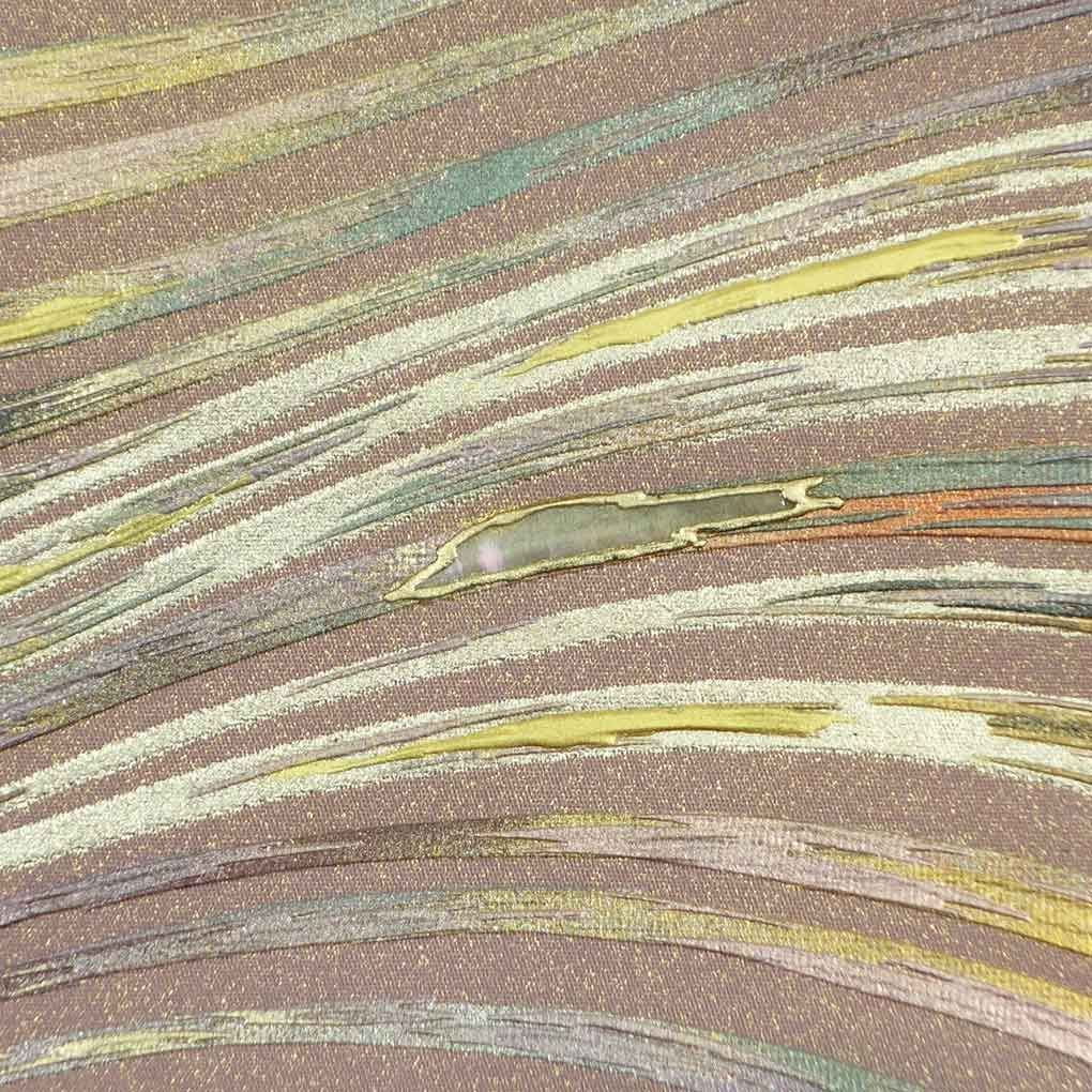 袋帯 幅31 cm 長さ435 レディース 螺鈿 秋冬春用 正絹 シルク ブラウン リメイク リユース リサイクル 呉服のきくや