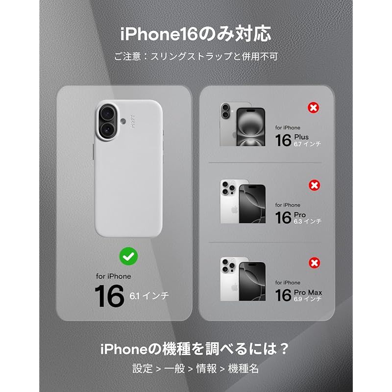 【MOVASの頑丈と耐久性が続く】MOVASヴィーガンレザーは防汚性能が高く、コーヒー、油、口紅など日常生活の汚れをサッと拭き取れ、スマホケースを常に新品のように保つことができます。MOVAS素材は耐久性が優れるだけでなく、環境に優しい技術を採用し、DMFなど有害な化学物質を一切含みません。 長期間に使用しても、変形したり色あせたりすることがなく、iPhone 16を全面的に保護し、見た目と性能を長持ちさせます。