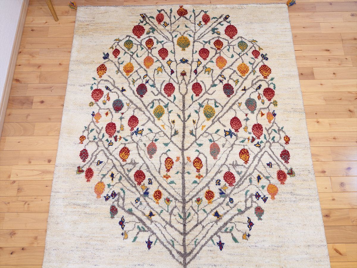 商品名: ペルシャ ギャッベ カシュガイ ザクロの木 ベージュ RJ8267