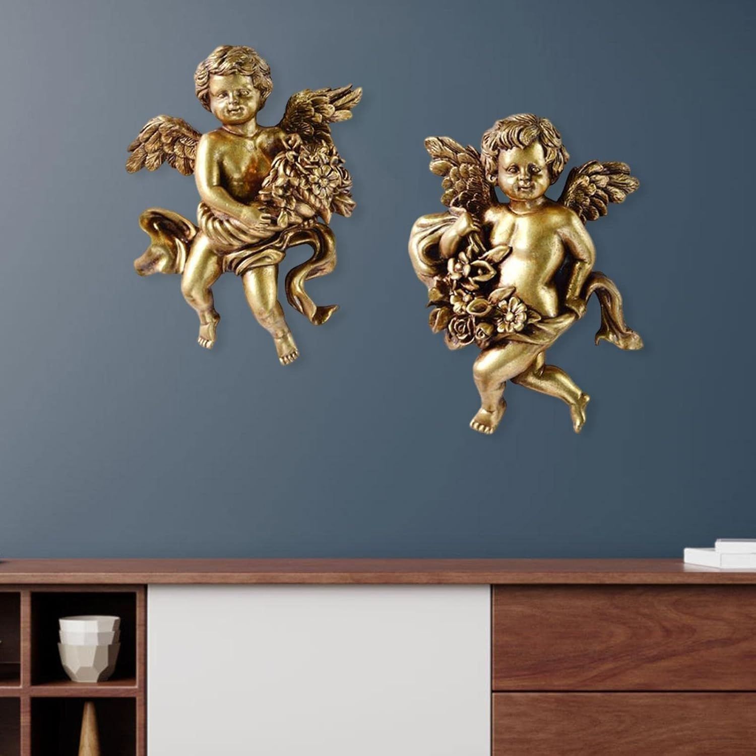 ヴィンテージ要素の天使の壁飾りは、お家を華やかに彩ります。