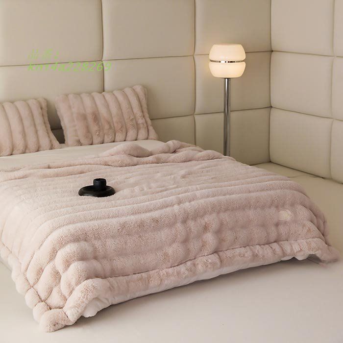 毛布 ブランケット ふわふわ 発熱 暖かい ラグジュア厚手 両面使える 秋冬 フェイクラビットファー 寒さ対策 kni 4 a 228269