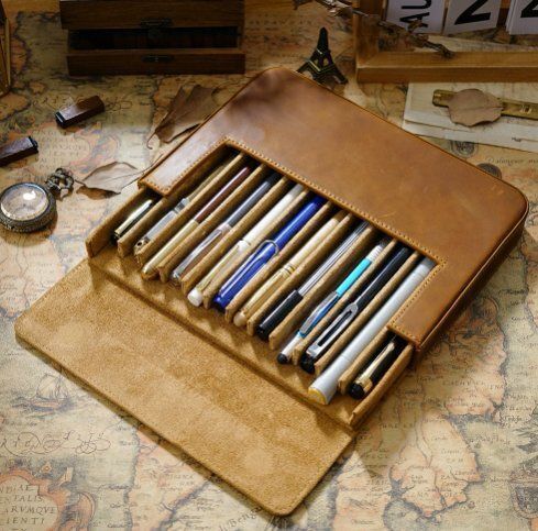 クレイジーホース革ペンケース12本入りハンドメイド引き出し式学生ペンケース収納ケースです