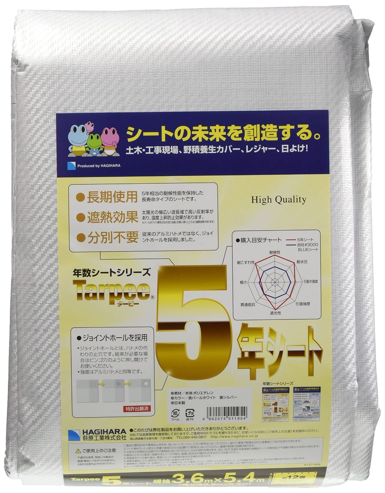 Hagihara ターピー 防水シート 5年シート Pホワイト シルバー 3700 3.6 mx 5.4 m