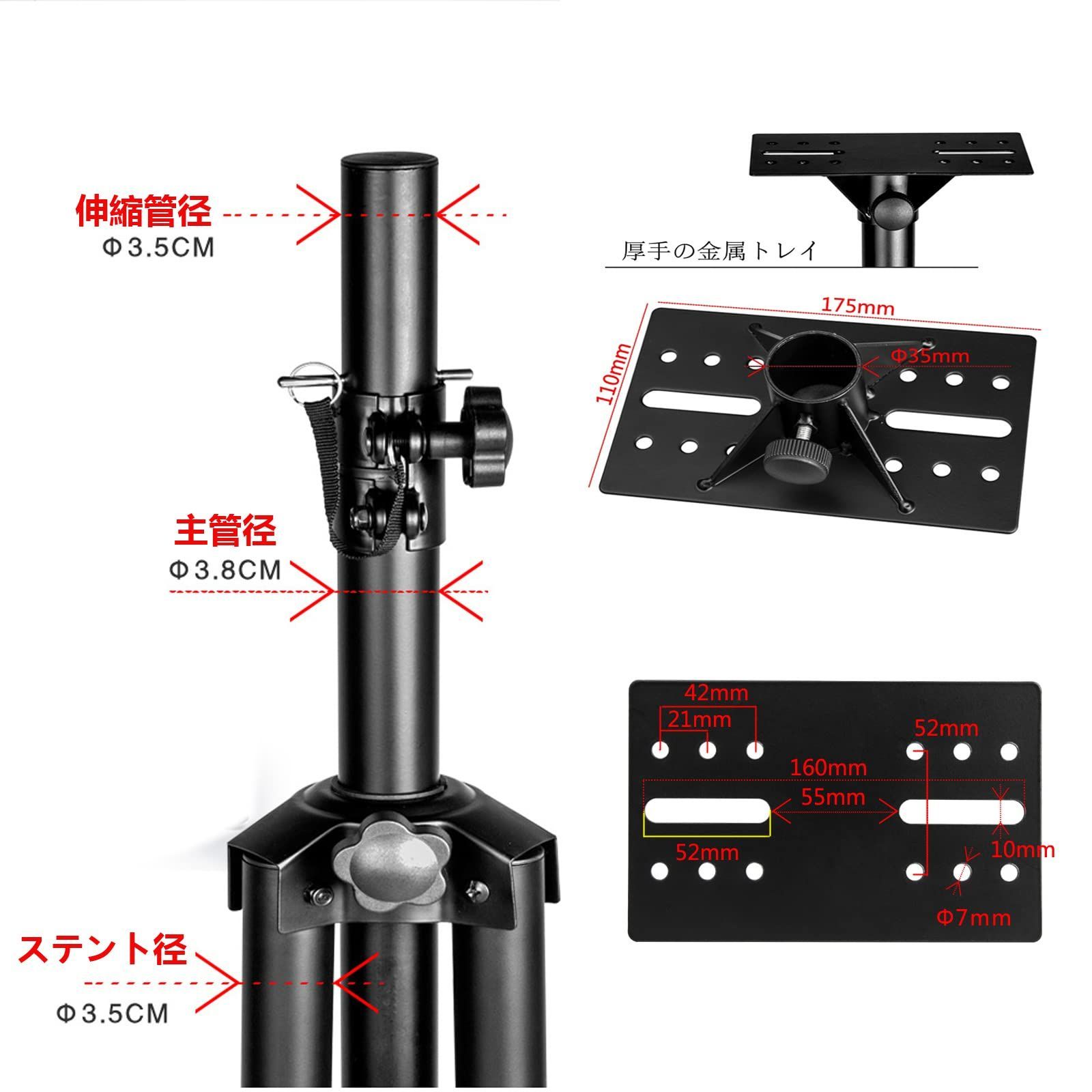 数量 スピーカースタンド 2本セット 高さ100 200 cm調節 折りたたみ式 スピーカー用 取付 金具 荷重40 kg