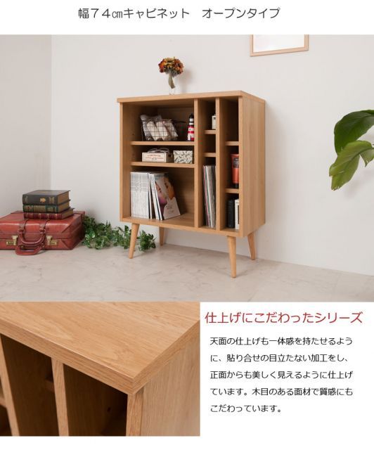 脚付リビングボードシリーズ 幅74 脚付きオープンラック ナチュラル ホワイト