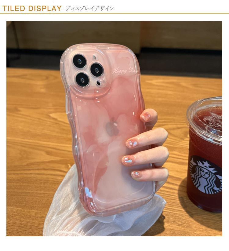 キュートなカラーとウェーブフレームが魅力的なiPhoneケース。
