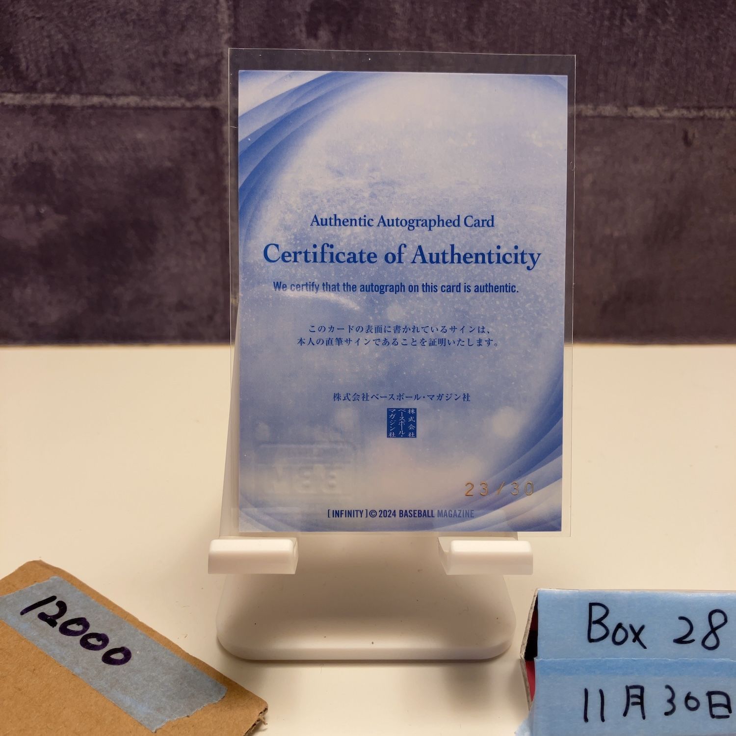 2024 BBM INFINITY 目代結菜 23/30 直筆サインカード