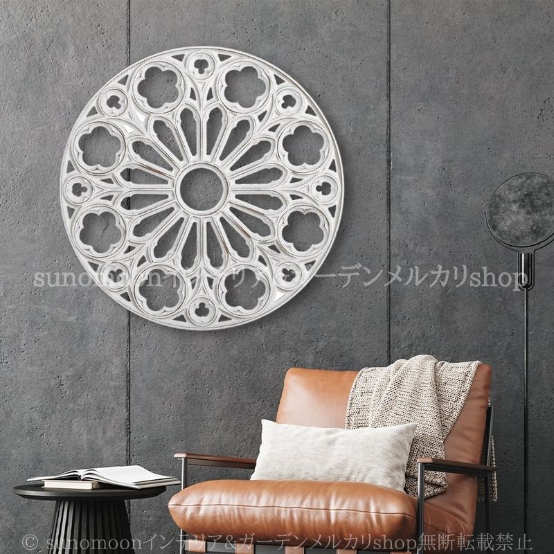 円形 ウォール アート ヨーロッパ風 花 葉 ヴィンテージ調 壁掛け インテリア 北欧 カントリー レトロ調 アンティーク調 白 ホワイト