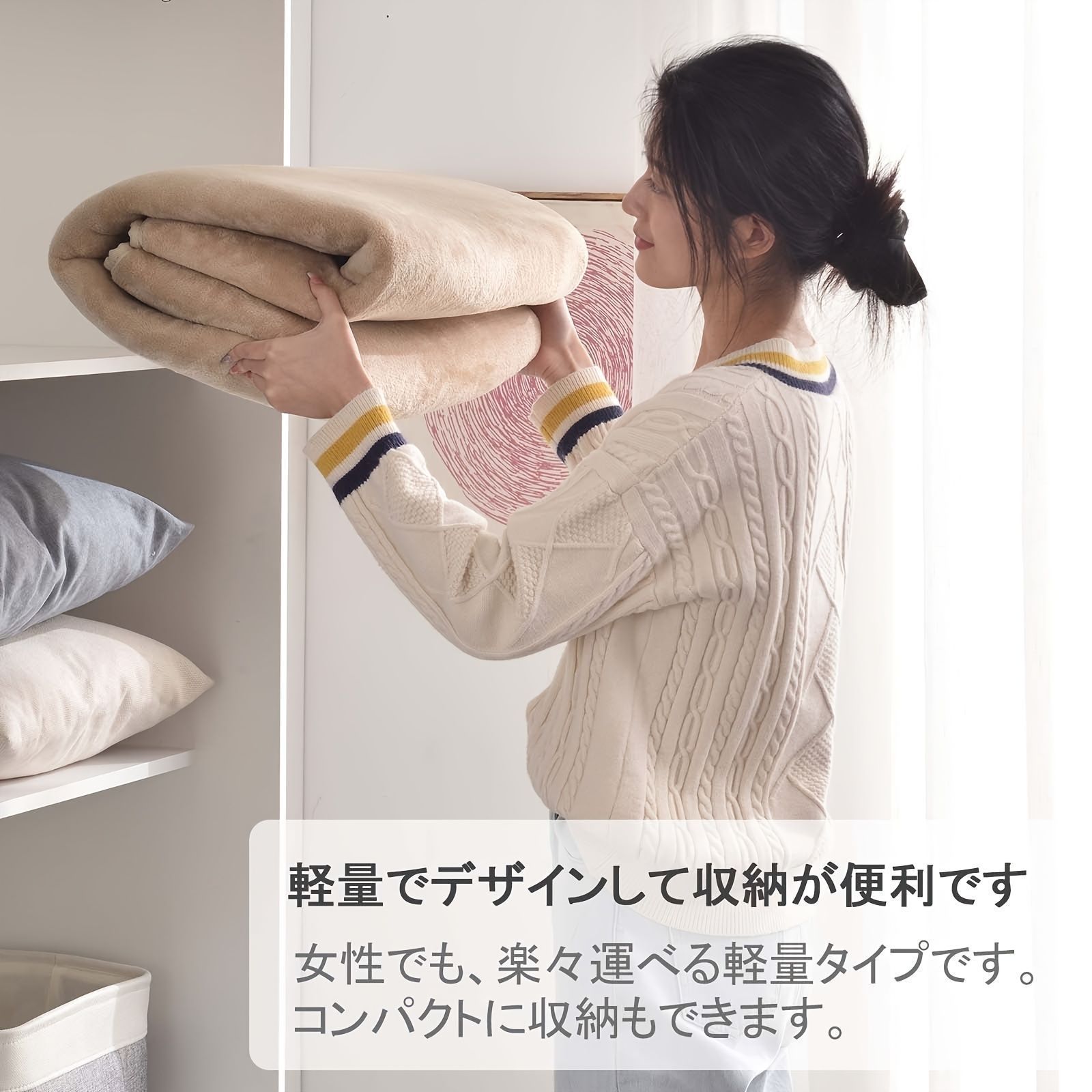 ベージュ・グリーン・グレーの落ち着いた3色展開で、リビングにも寝室にもぴったりです。