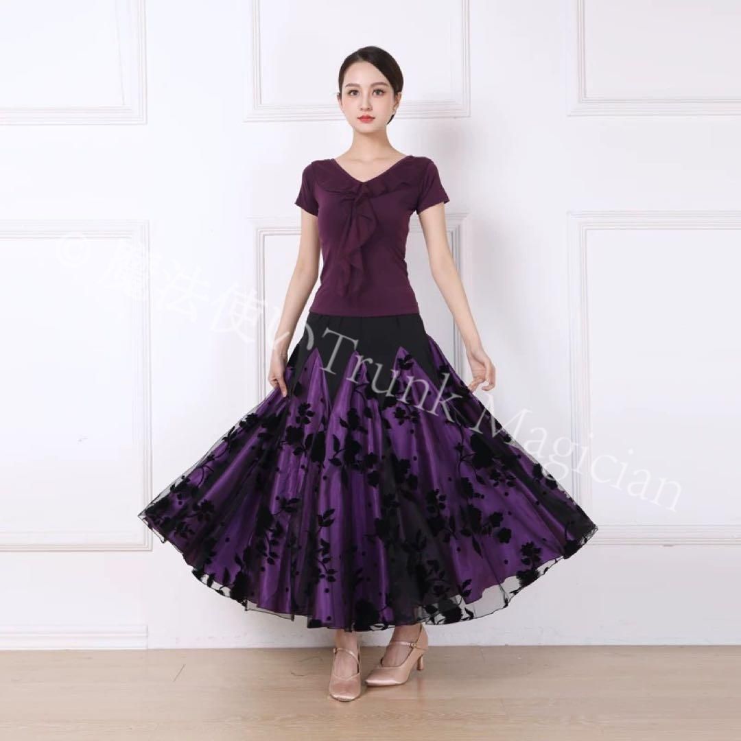 商品詳細:優雅に踊るあなたを彩る、社交ダンス練習着2点セット!トップス&スカートで動きやすさ抜群。