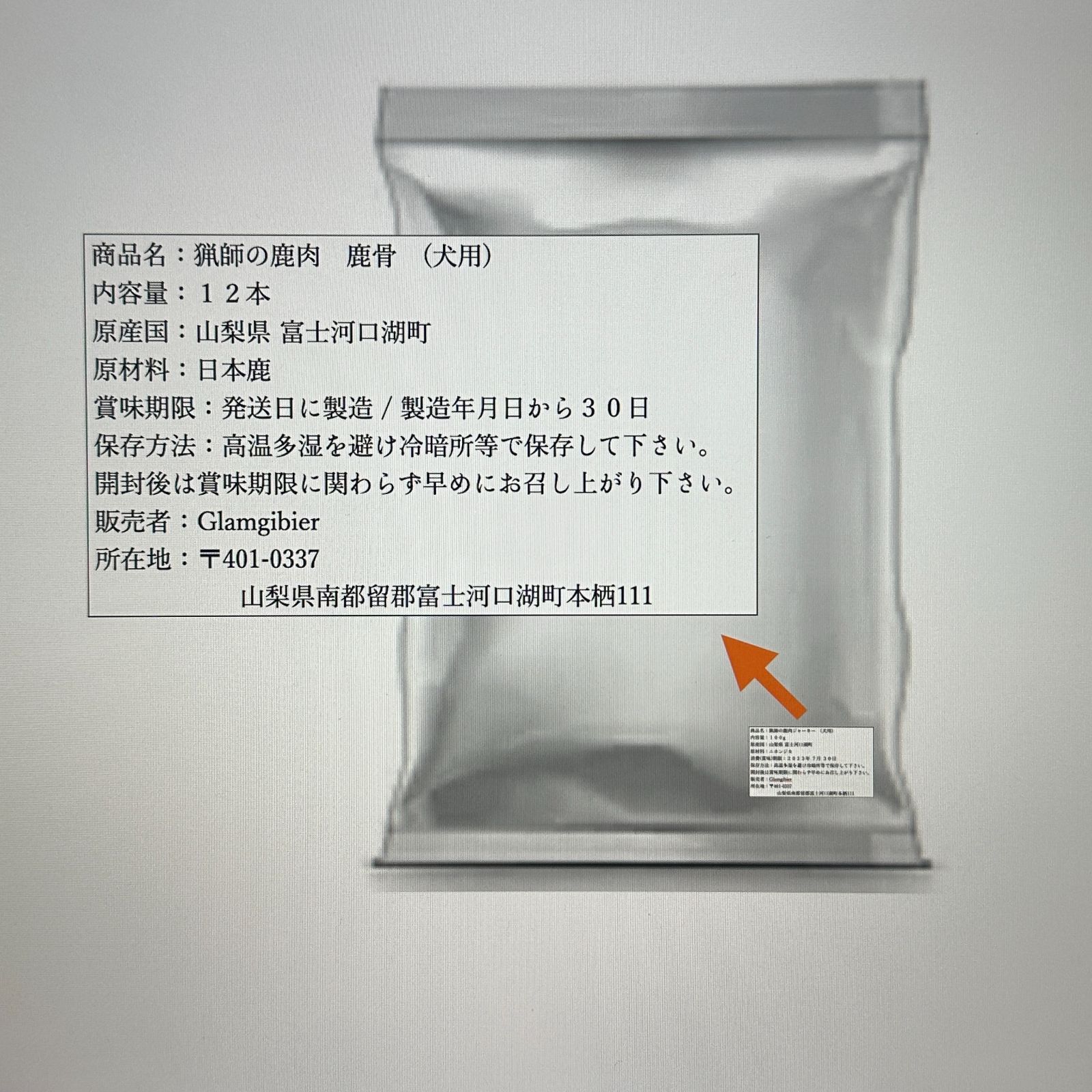 ● 商品名:猟師の鹿肉 鹿骨