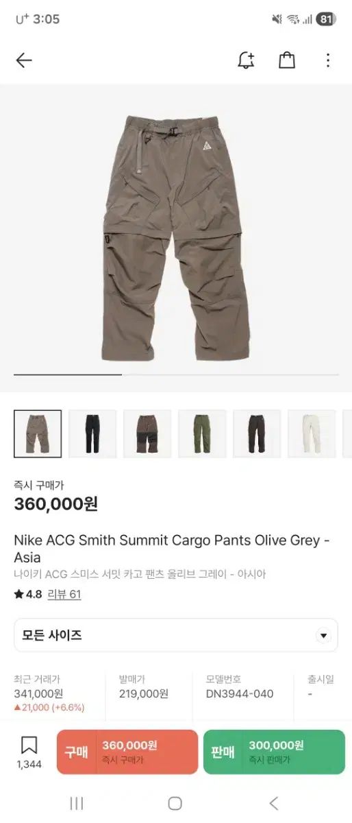 acg スミス サミット オリーブ グレー アジア L