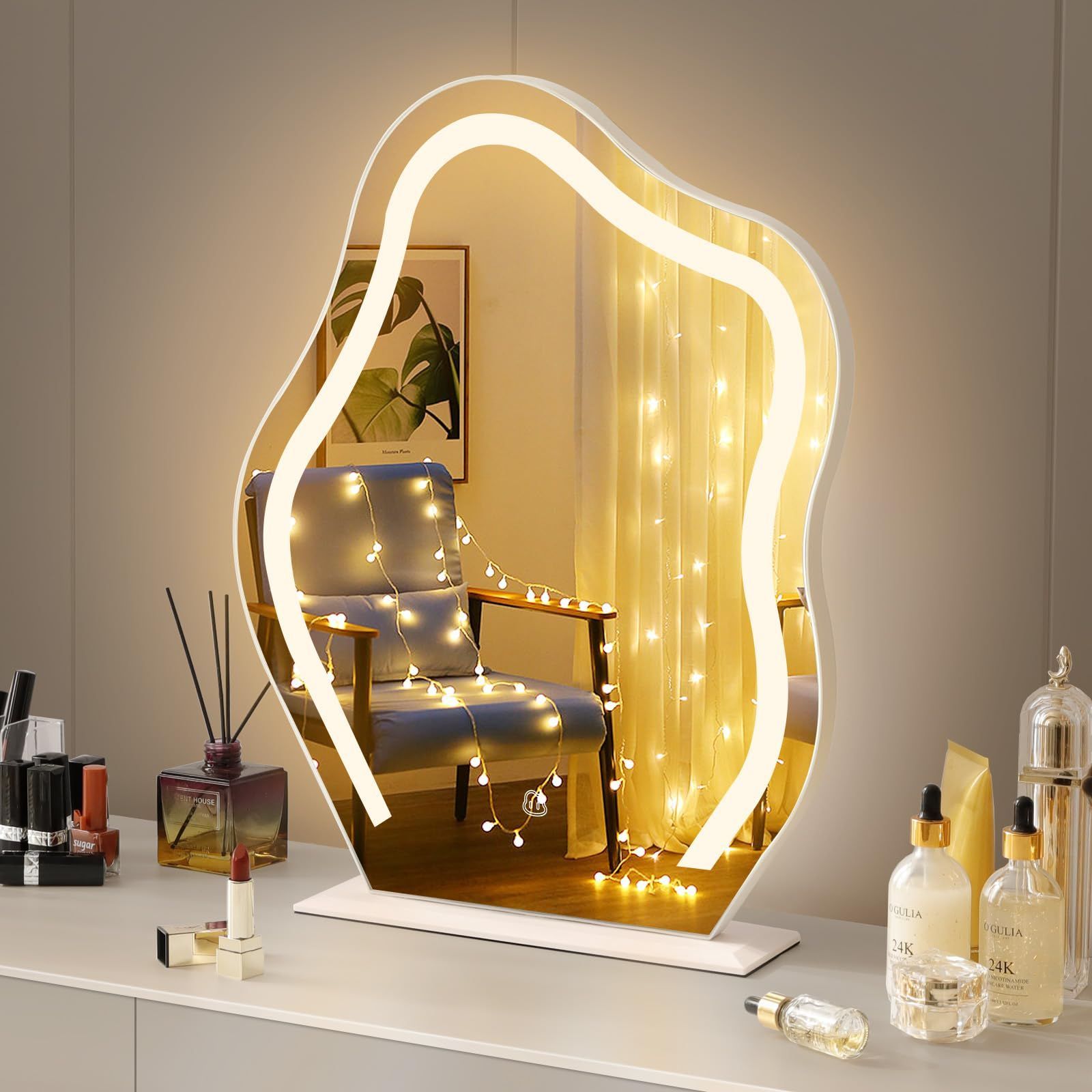 FENCHILIN 女優ミラー 鏡 卓上 壁掛け 2WAY ライト付き 化粧鏡 ハリウッドミラー 女優鏡 卓上鏡 壁掛けミラー led ミラー 三色照明モード 無段階調光 10倍拡大鏡付き くも型 44.7×54.6CM