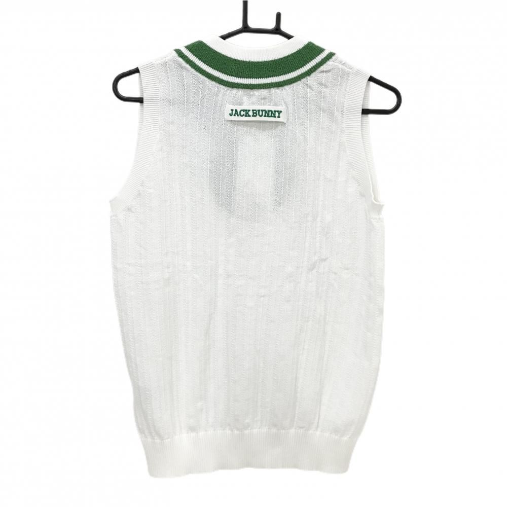 ジャックバニー ニットベスト 白×グリーン コットン混 コールクローバー レディース 2 L ゴルフウェア Jack Bunny