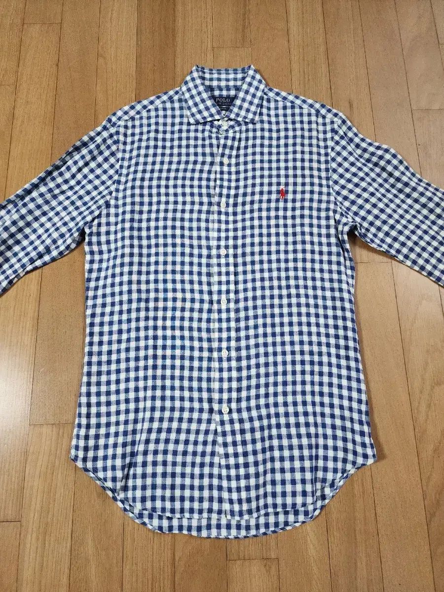 ポロラルフローレンサザン 95サイズハーフチェスト 52cm 着丈 77cm 麻 100% ギンガムチェック爽やかなチェック柄が魅力的な長袖シャツです。損傷や汚れがなく、良好な状態です。