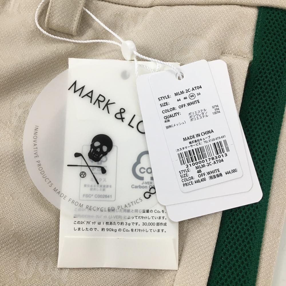 マークアンドロナ パンツ ベージュ×グリーン スカル ロゴ織生地 メンズ 48 L ゴルフウェア モデル MARK&LONA