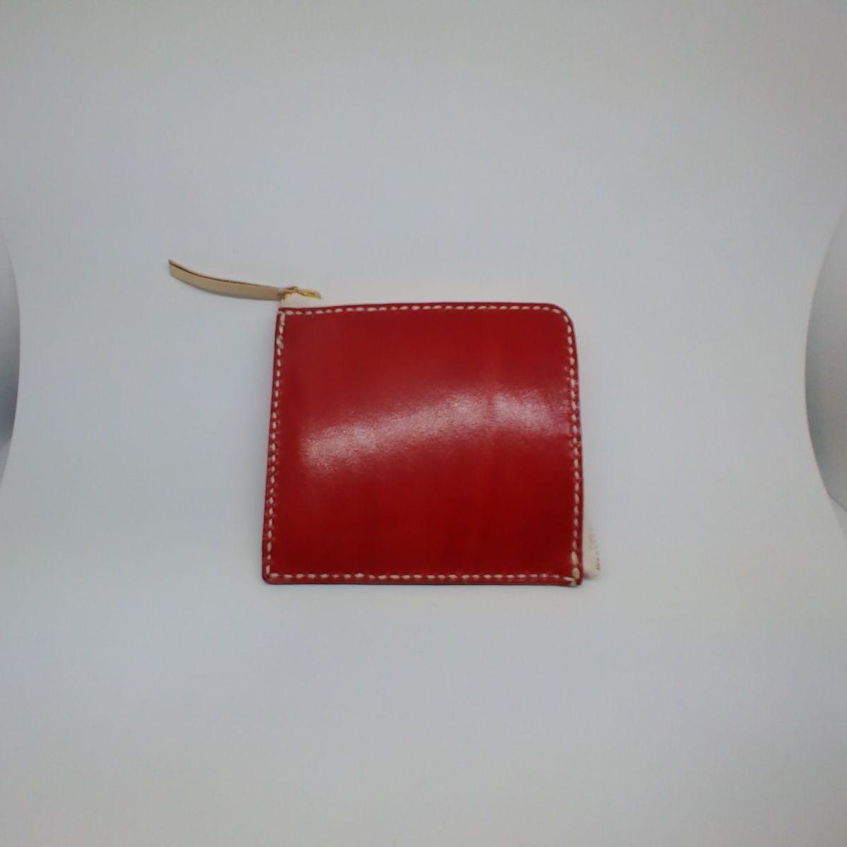 コードバンブラックとイタリアンレザーレッドのクレイジーパターンL型財布です。