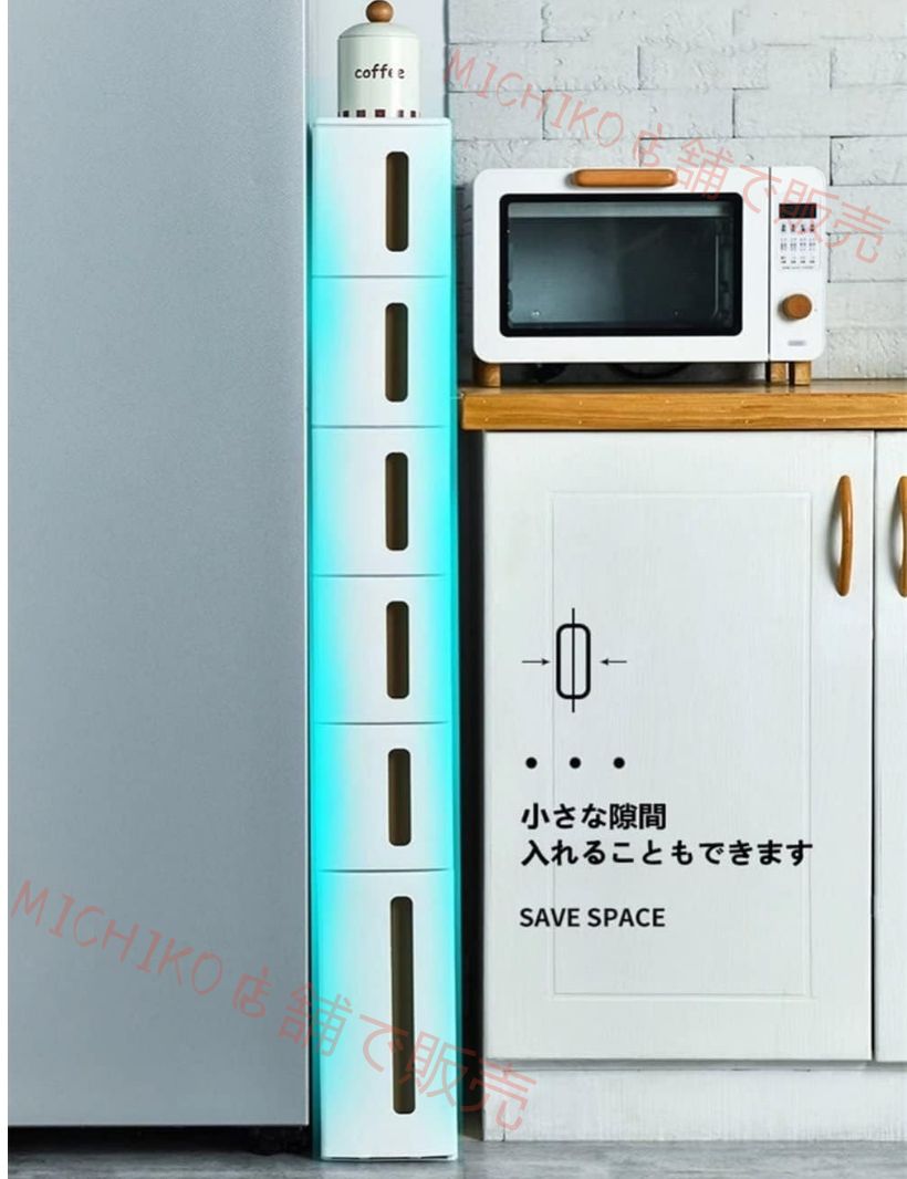 収納キャビネット 14 cm超狭ギャップ キッチンラック キッチンストッカー 洗面所用キャビネット 引き出し 防水 落下防止 リビング 洗濯機 冷蔵庫横 トイレ ランドリー収納 隙間 ホワイト 5段