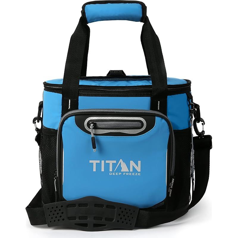TITANのディープフリーズトートクーラー:断熱メインコンパートメントにはアクセスしやすいハッチが付いており、食べ物や飲み物に素早くアクセスできます。メッシュサイドポケット2つと外部ジッパーポケット付きで収納力も増やします。氷を2日間保管でき、最大24缶を収納できます。