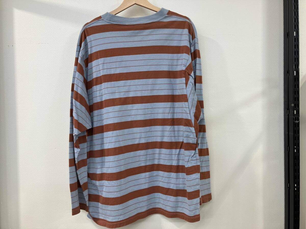 UN 長袖Tシャツ アンユーズド US 1513 Long sleeve border ボーダー 水色系 コットン 汚れ有り