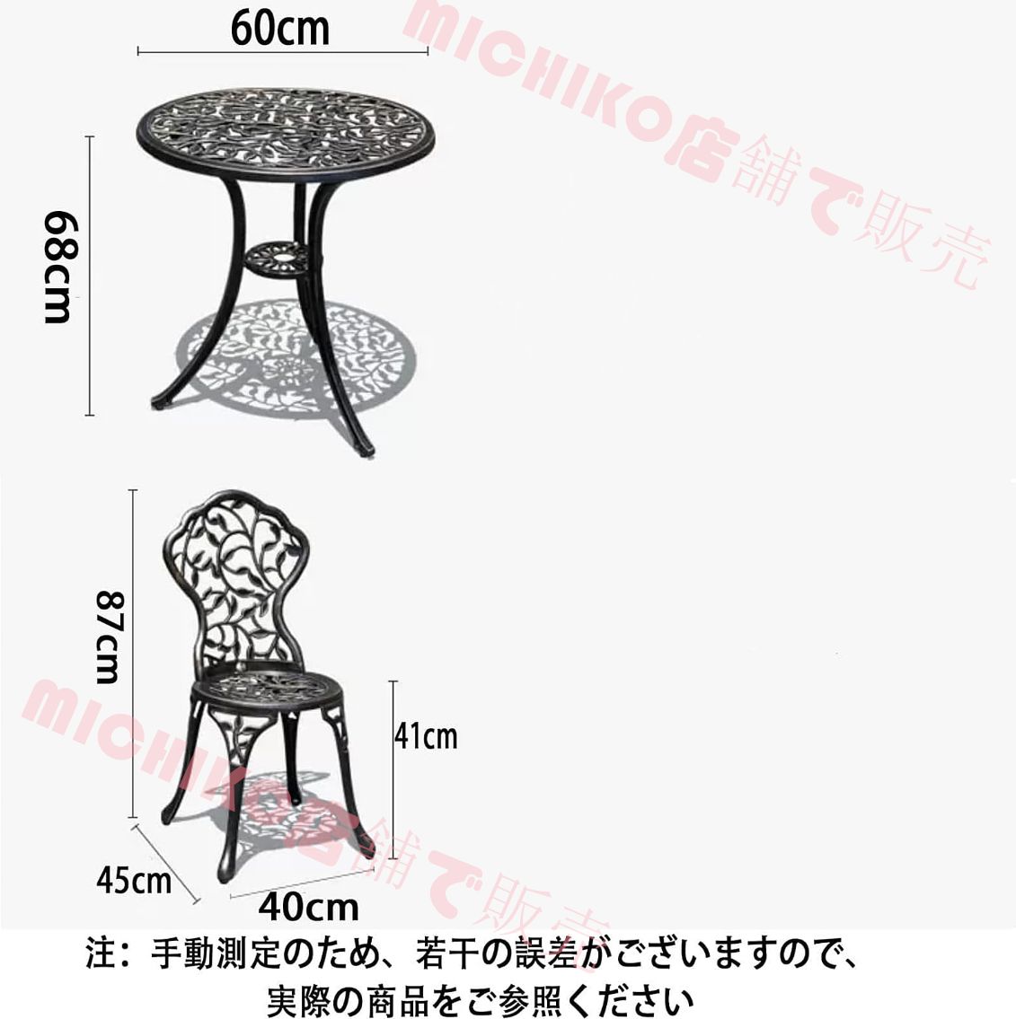 ガーデンテーブルセット 鋳造アルミニウム ガーデンテーブル テーブルと椅子3点セットアルミ鋳物テラス用テーブルセットガーデンテーブルチェア 北欧 レトロ風 屋外防水ガーデン家具 丸型バルコニーテーブル パティオや庭園用アルミニウムテーブル