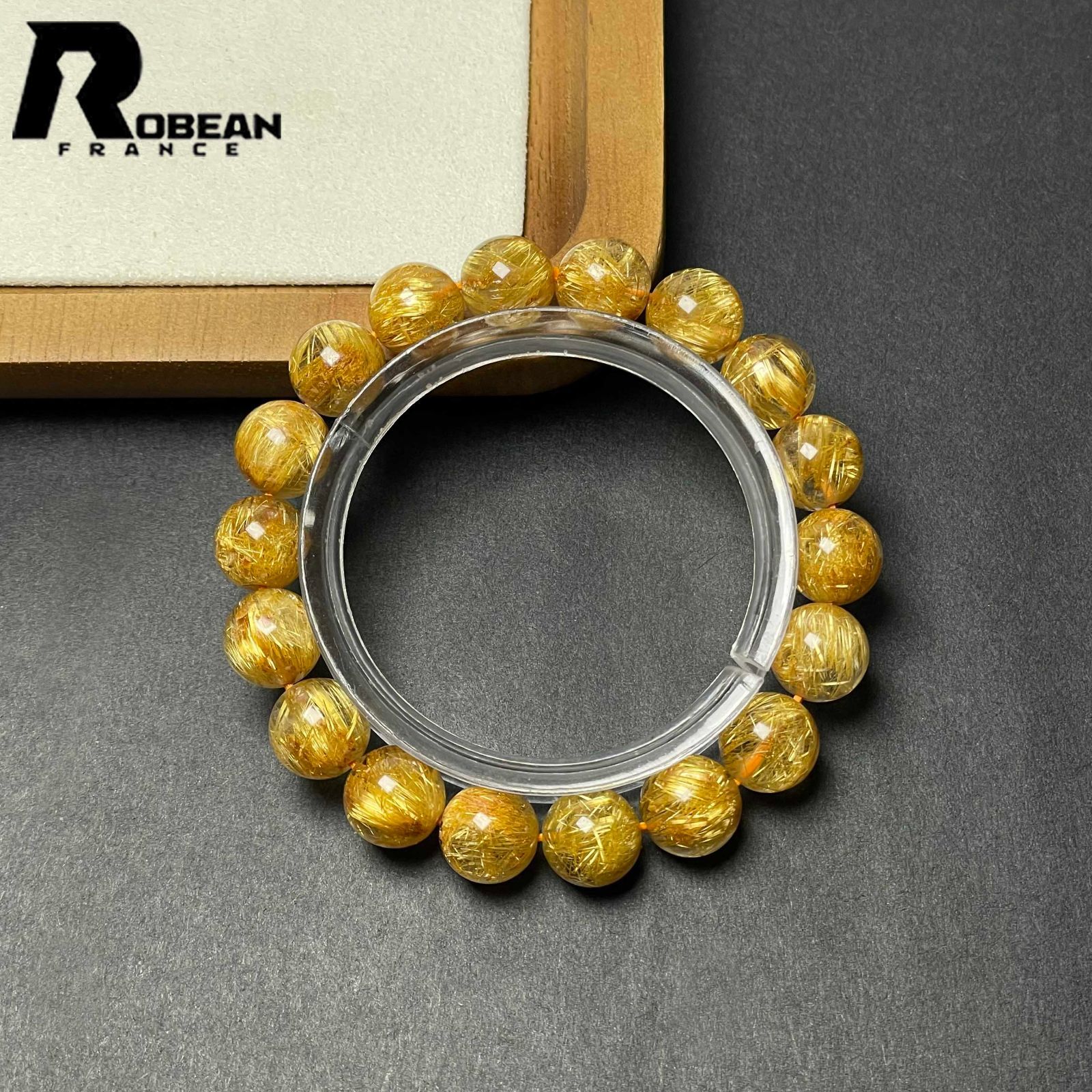 上品 EU製 定価90万円 ROBEAN ! 満針ルチルクォーツ ブレスレット パワーストーン 天然石 金運 お守り プレゼント 10.8-11.2 mm