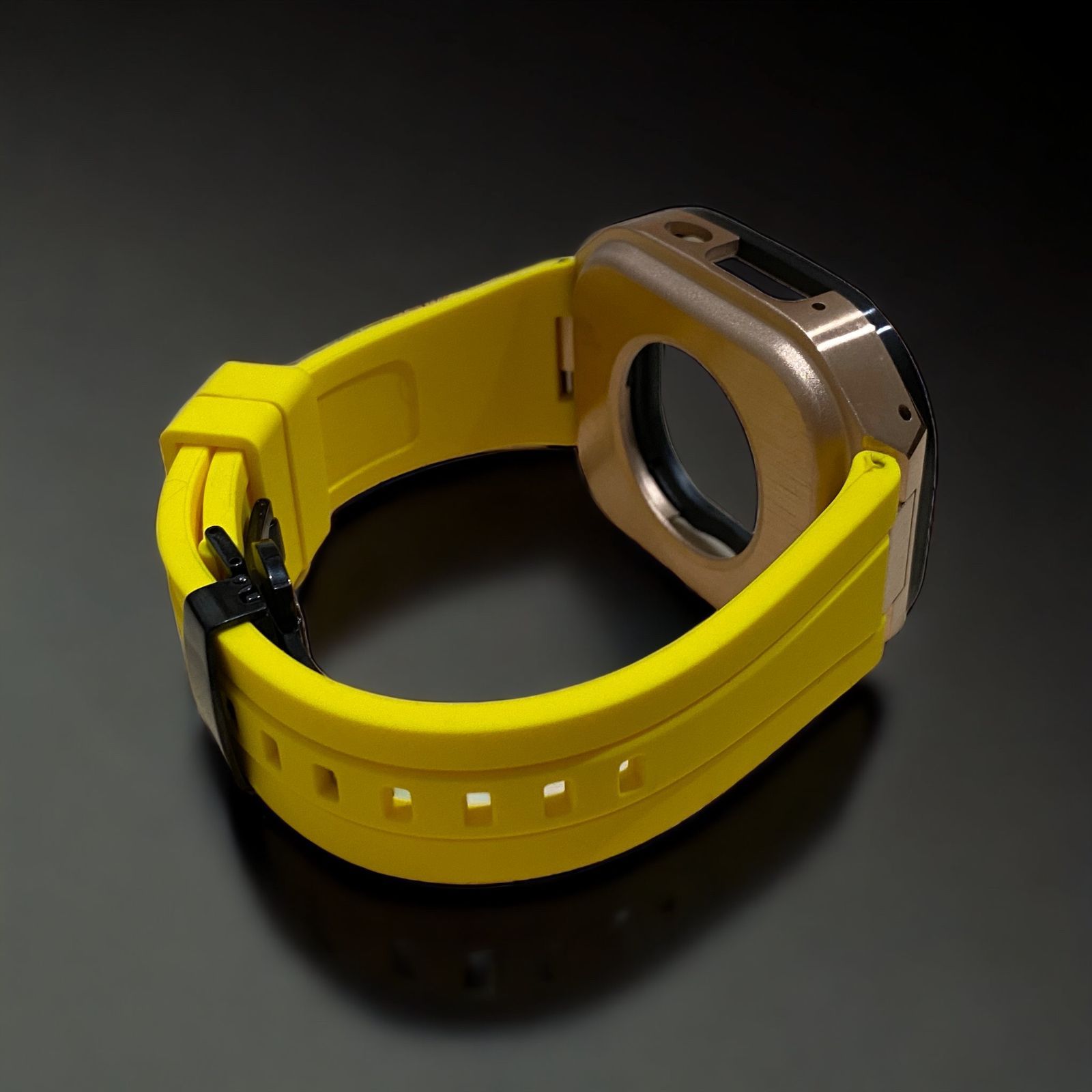 イエロー×ローズブラック 49 mm apple watch ultraアップルウォッチラバーメタルカバーセット ウルトラ 49ミリ用 カスタム ultra 2