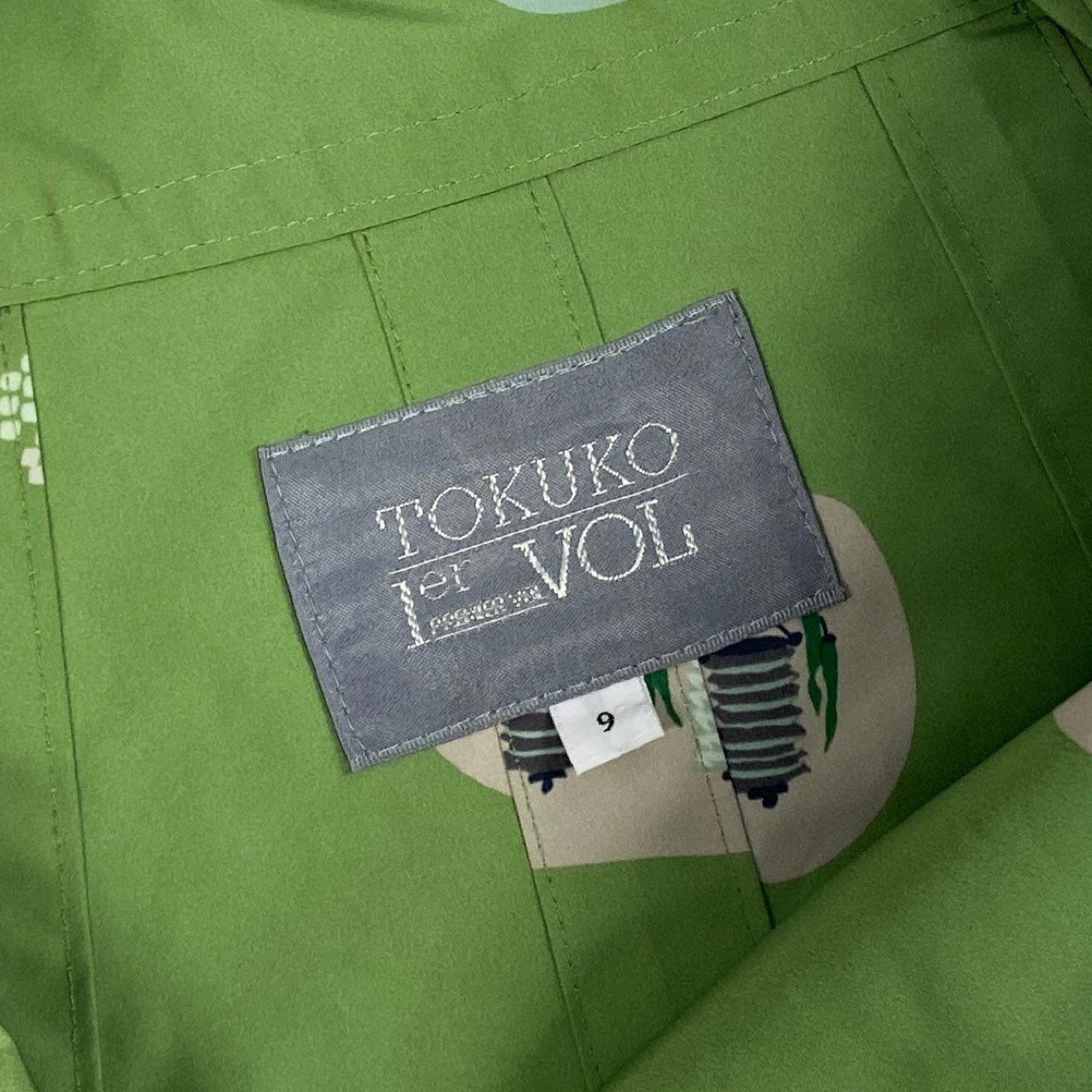 56 k 27 TOKUKO 1 er VOL トクコプルミエヴォル 薄手コート ジャケット 裏地総柄 Aライン 9 グリーン ポリエステル レディースu 02 t