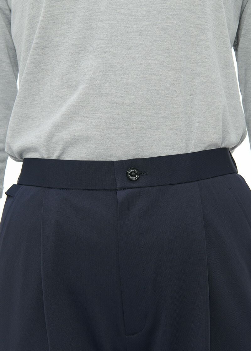 フロントタック入りのレディースパンツ。すっきりしたスタイリッシュな印象のテーパードシルエット。ウエストループ、股下丈調整機能付きで機能的にも優れています。