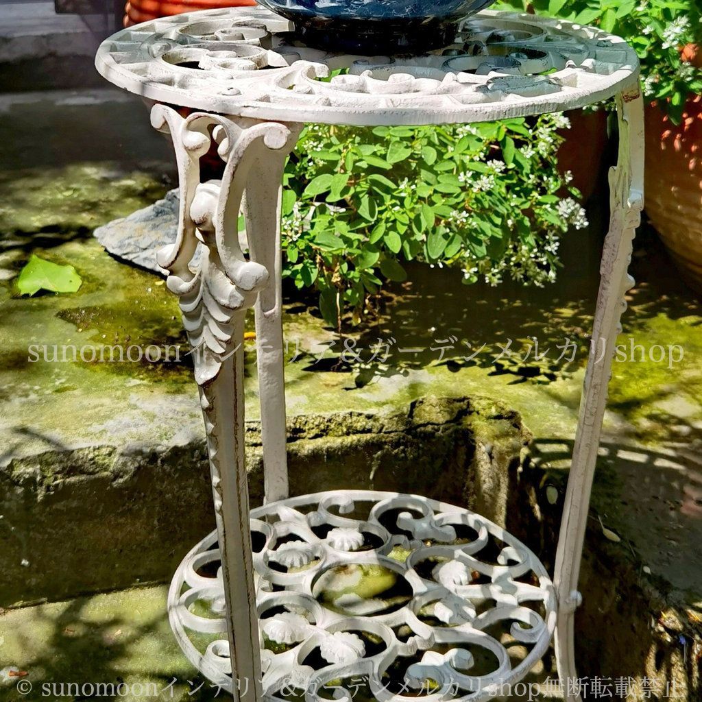 ヴィンテージ調 シャビーシック ホワイト グリーン ガーデン インテリア プランタースタンド 雑貨 シャビー加工 おしゃれ ガーデンインテリア お洒落 ガーデン雑貨 庭の装飾 8-14 ガーデニング プランターラック 金属