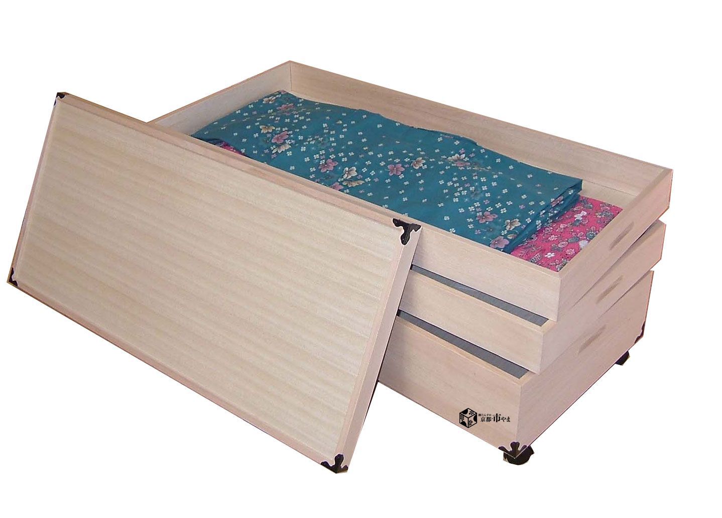 1段につき浅箱で着物が1−2枚、深箱で3−4枚程度入ります